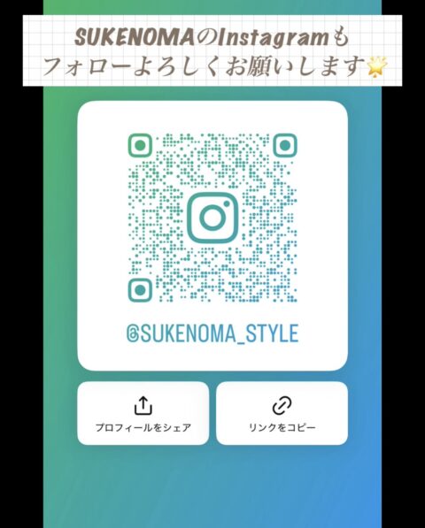 オンラインショップ『SUKENOMA』のInstagram、LINE、TikTokの開設もしましたので、興味を持って頂いた方はフォロー、追加お願いします☺️